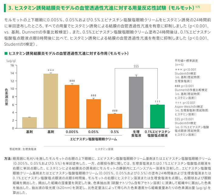 どちらも動物実験のデータですが、眼瞼クリームは即効性にすぐれ、毎日使用することで相加効果もあり、点眼薬よりかゆみの抑制に有用な可能性があります。